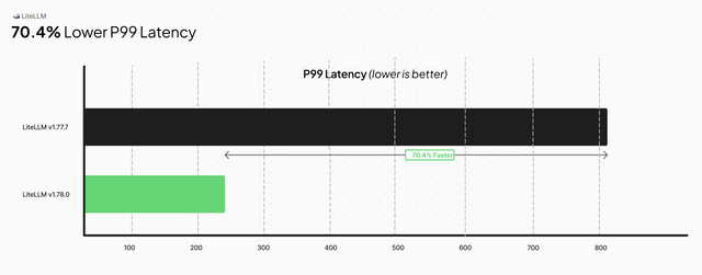 This release cuts p99 latency by 70% on LiteLLM AI Gateway, making it even better for low-latency use cases.